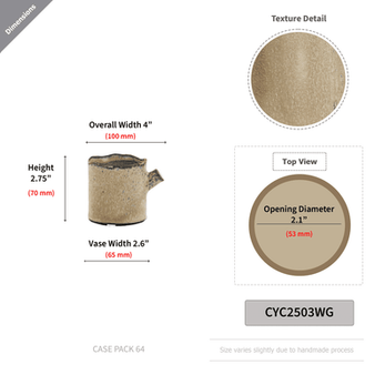 Quick view Compare CYC2503WG - Small Birch Tree Trunk Vase - 2.6" W x 2.75" H 64 Piece Case Diameter: 2.6" (65mm) Height: 2.75" (70mm) Color: Birch Introducing our exquisite co… MSRP: Was: Now: $10.50 - $334.50 Choose Options