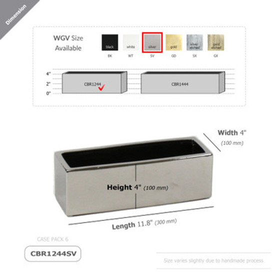 CBR1244SV - Silver Long Rectangle - 12"x4"x4"