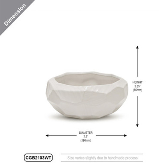CGB2103WT - White Geometric Bowl - 7.7" W x 3.35" H