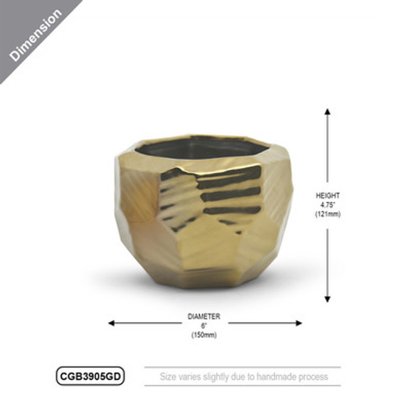 CGB3905GD - Large Gold Geometric Pot - 6" W x 4.75" H
