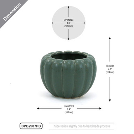 CPB2907PB - Medium Weathered Hunter Green Pumpkin Pot - 6.4" W x 4.5" H