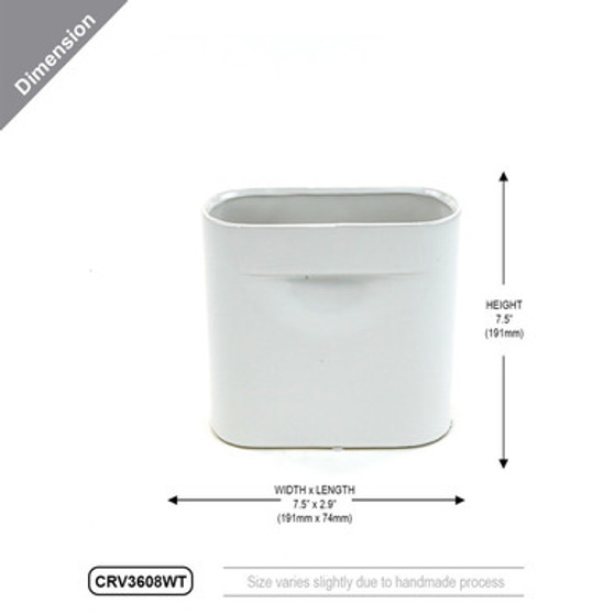 CRV3608WT - Medium White Flat Portfolio Vase - 7.5" W x 2.9" L x 7.5" H