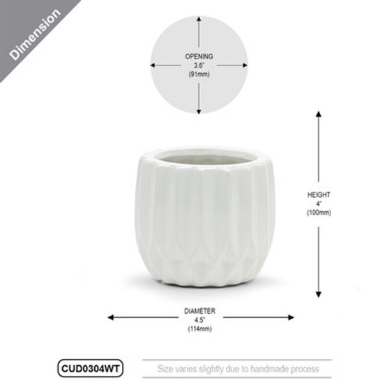 CUD0304WT - Small Unique Modern White Pot - 4" H