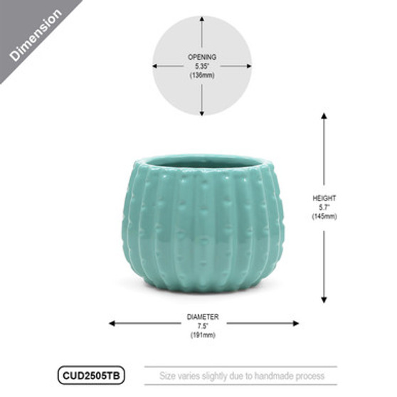 CUD2505TB - Medium Teal Ceramic Cactus Pot - 5.7" H