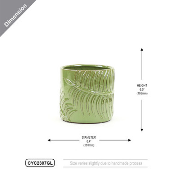 CYC2307GL - Large Green Fern Cylinder Vase - 6.4" D x 6.5" H