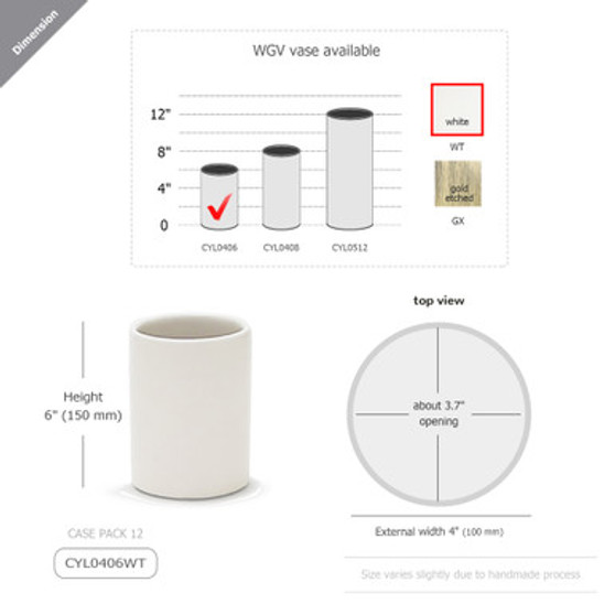 CYL0406WT- White Cylinder Ceramic - 4"x6"