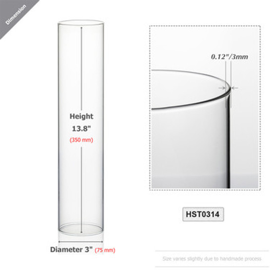 HST0314 - Clear Hurricane Candle Shade Chimney Tube [No Bottom] - 3" x 14"