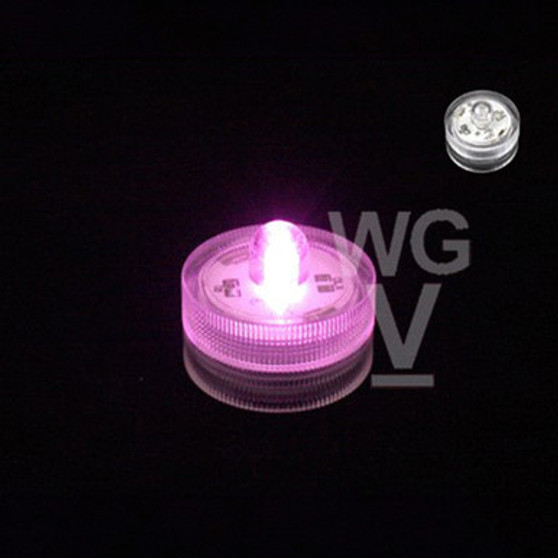 Pink Submersible LED Decor Light - 1.25" diameter, 1" Height, able to submerge in water. Package: 10 pcs