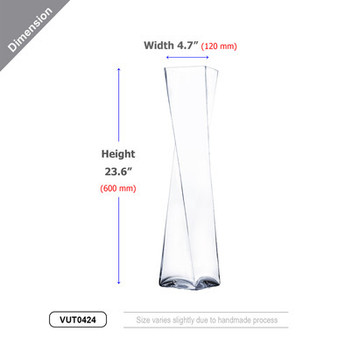 Quick view Compare VUT0424 - Clear Twist Block Glass Vase - 4.7" x 24" Length: 4.7" (120mm) Width: 4.7" (120mm) Height: 23.6" (600mm) Introducing our Unique Glass Vas… MSRP: Was: Now: $72.75 - $145.25 Choose Options