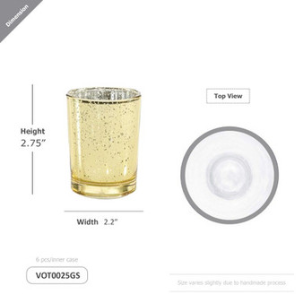 Quick view Compare VOT0025GS - Gold Speckled Mercury Cylinder Votive Candle Holder - 2.75" VOT0025GS - Gold Speckled Mercury Cylinder Votive Candle Holder - 2.75" Top Diameter: 2.2"Base: 1.9"… MSRP: Was: Now: $8.00 - $79.25 Choose Options