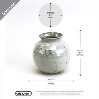 Quick view Compare CRB3206WT - Medium Round Urn Bud Vase - 5.5" W x 5.4" H 16 Piece Case Width: 6" (150mm) Length: 2.6" (66mm) Height: 5.9" (150mm) Color: White Introducing … MSRP: Was: Now: $23.00 - $138.00 Currently Out-Of-Stock
