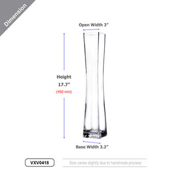 Quick view Compare VXV0422 - Unique Square Concave Glass Vase - 4" x 22" Base Width: 4" (100mm) Opening Width: 3.5" (90mm) Height: 21.7" (550mm) Introducing our Unique … MSRP: Was: Now: $48.50 - $193.75 Choose Options