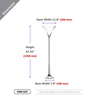 Quick view Compare VMG1247 - Martini Glass Vase - 47" Top Width: 11.8" (300mm) Height: 47.24" (1200mm) Base Width: 7.9" (200mm) Introducing our exquisi… Now: $227.00 Currently Out-Of-Stock