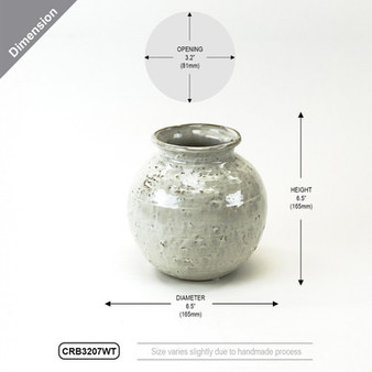 Quick view Compare CRB3207WT - Large Round Urn Bud Vase - 6.5" W x 6.5" H 8 Piece Case Diameter: 6.5" (165mm) Height: 6.5" (165mm) Opening: 3.2" (81mm) Color: Off White Int… MSRP: Was: Now: $36.50 - $145.25 Choose Options