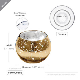 Quick view Compare VBW0003 - Mercury Bubble Bowl Vase / Votive Candle Holder - 3" (Various Colors) Diameter: 3.15" (80mm) Height: 2.56" (65mm) Opening: 2.36" (60mm) Thickness: approximately 0.08" (2… MSRP: Was: Now: $3.75 - $174.25 Choose Options