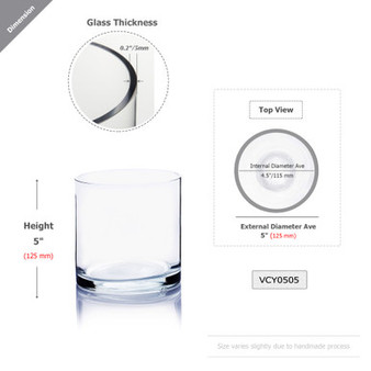 Quick view Compare VCY0303 - Cylinder Glass Vase - 3" x 3" Diameter: 3" (75mm) Height: 3" (75mm) Thickness: approximately 0.2" (varies slightly due to handbl… MSRP: Was: Now: $5.50 - $64.75 Choose Options