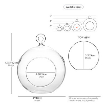 Quick view Compare HCH0104 - Clear Hanging Glass Terrarium / Candle Holder - 4"x5" Width: 4" (100mm) Height: 4.7" (119mm) Opening: 2.4" (60mm) Introducing our exquisite collecti… MSRP: Was: Now: $4.50 - $105.75 Choose Options