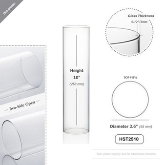 Quick view Compare HST2510 - Clear Hurricane Candle Shade Chimney Tube [No Bottom] - 2.5" x 10" Diameter: 2.6" (65mm) Height: 10" (250mm) Thickness: approximately 0.12" (varies slightly due to h… MSRP: Was: Now: $8.00 - $93.75 Choose Options