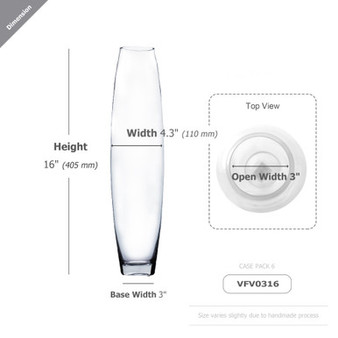 Quick view Compare VFV0316 - Clear Bullet Urn Glass Vase - 3" x 16" Diameter: 4.3" (110mm) Height: 16" (406mm) Opening Diameter: 3" (75mm) Base: 3" (75mm) Introduci… MSRP: Was: Now: $24.25 - $72.75 Choose Options
