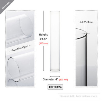 Quick view Compare HST0424 - Clear Hurricane Candle Shade Chimney Tube [No Bottom] - 4" x 24" Diameter: 4" (100mm) Height: 23.6" (600mm) Thickness: approximately 0.12" (varies slightly due to … MSRP: Was: Now: $17.75 - $105.75 Choose Options