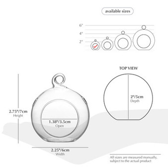Quick view Compare HCH0102 - Hanging Round Terrarium / Candle Holder - 2" Width: 2" (50mm) Height: 2.7" (69mm) Opening: 1" (25mm) Introducing our exquisite collection of G… MSRP: Was: Now: $18.50 - $111.00 Choose Options