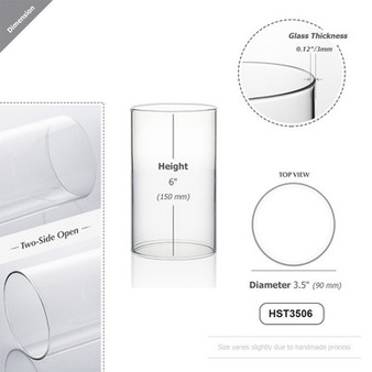 Quick view Compare HST3506 - Clear Hurricane Candle Shade Chimney Tube [No Bottom] - 3.5" x 6" Diameter: 3.5" (90mm) Height: 6" (150mm) Thickness: approximately 0.12" (varies slightly due to ha… MSRP: Was: Now: $8.00 - $93.75 Choose Options