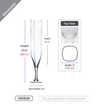 Quick view Compare VCV0124 - Geometric Champagne Flute Vase - 24" Top Length: 4" (100mm) Top Width: 4" (100mm) Height: 23.6" (600mm) Depth: 17.7" (449mm) Base Width… MSRP: Was: Now: $54.50 - $109.00 Currently Out-Of-Stock