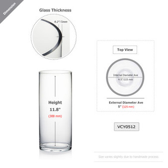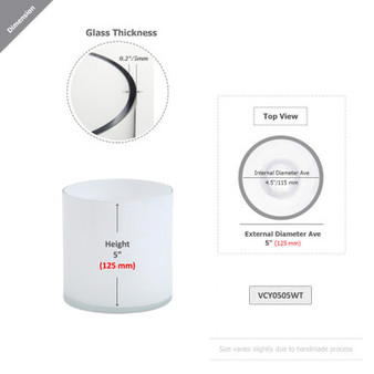 Quick view Compare VCY0505WT - White Glass Cylinder Vase - 5" x 5" Diameter: 5" (125mm) Height: 5" (125mm) Thickness: approximately 0.2" (varies slightly due to hand… MSRP: Was: Now: $16.50 - $97.75 Currently Out-Of-Stock