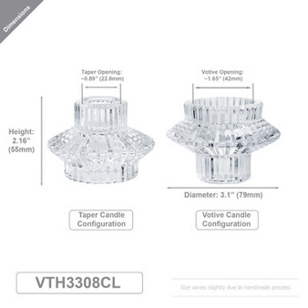 Quick view Compare 3.1" Clear Bespoke Taper, Tealight & Votive Candle Holder Diameter: 3.1" (79mm) Height: 2.16" (55mm) Color: Clear Reversible design fits taper, tealight &am… MSRP: Was: Now: $13.25 - $87.25 Choose Options