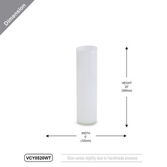 Quick view Compare VCY0520WT - White Cylinder Glass Vase - 5" x 20" Diameter: 5" (125mm) Height: 20" (500mm) Thickness: approximately 0.2" (varies slightly due to han… MSRP: Was: Now: $42.50 - $127.25 Choose Options