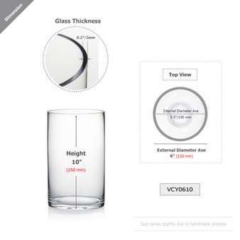 Quick view Compare VCY0606FR - Frosted Cylinder Glass Vase - 6" x 6" Diameter: 6" (150mm) Height: 6" (150mm) Thickness: approximately 0.2" (varies slightly due to hand… MSRP: Was: Now: $17.00 - $101.75 Choose Options