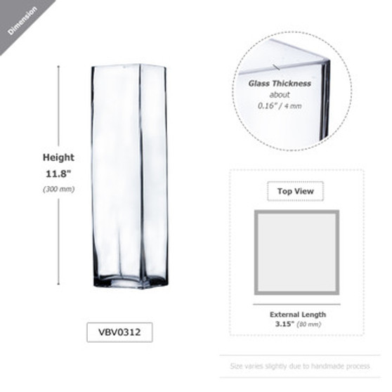 VBV0312 - Square Block Glass Vase - 3" x 12"H