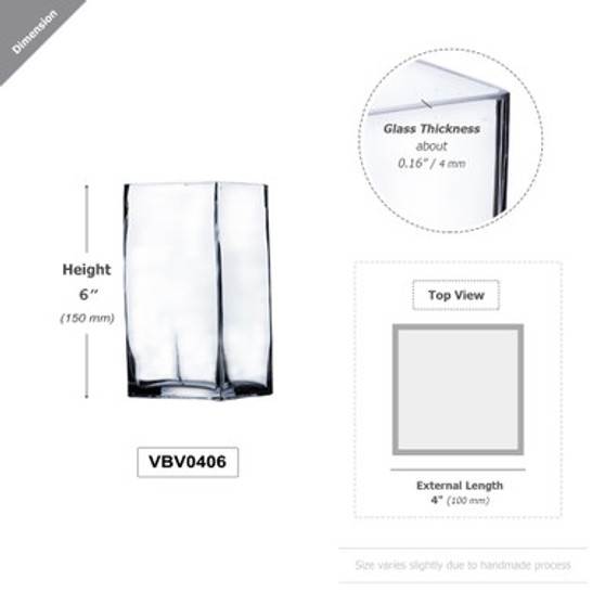 VBV0406 - Square Glass Block Vase - 4" x 6"