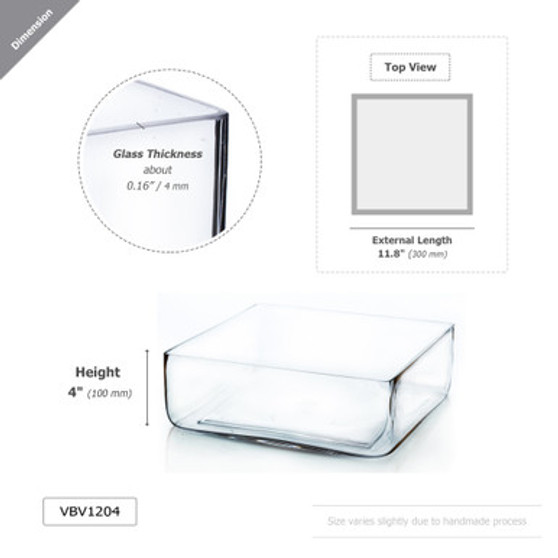 VBV1204 - Square Glass Block Vase - 12" x 4"