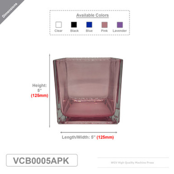 VCB0005APK - Everyday Pink Cube Glass Candle Holder / Vase - 5"