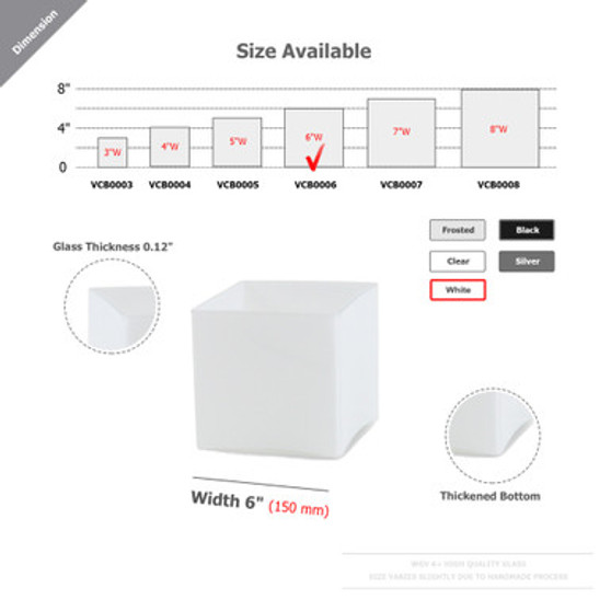 VCB0006WT - Handblown White Cube Glass Vase / Candle Holder - 6"
