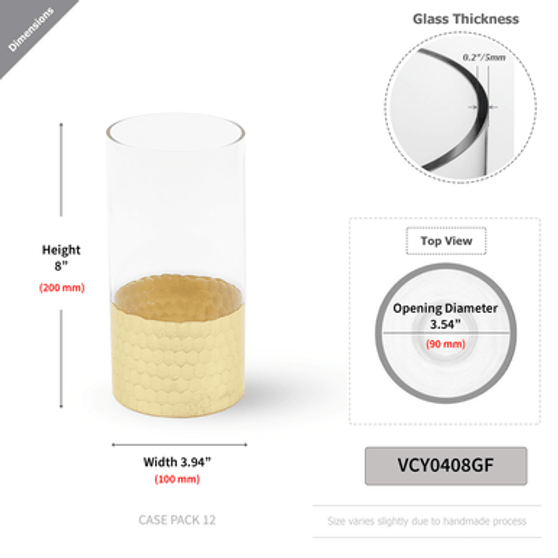 VCY0408GF - Cylinder Glass Vase with Gold Foil Honeycomb - 4" x 8"
