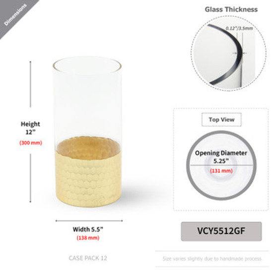 VCY0512GF - Cylinder Glass Vase with Goldfoil Honeycomb - 5" x 12"
