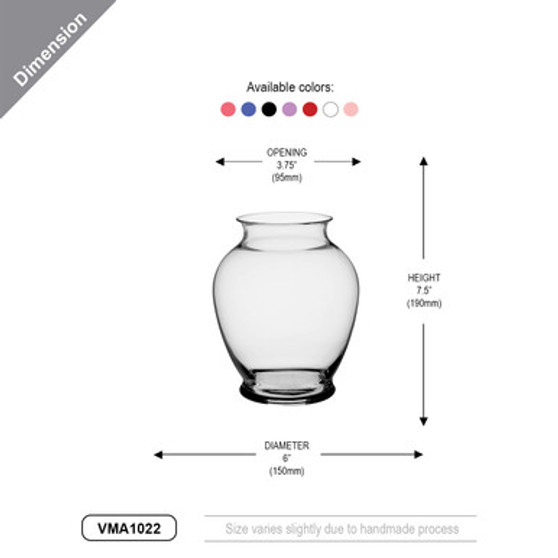 VMA1022 - Dunham Urn Vase, Machine Blown - 7.5" (Various Colors)