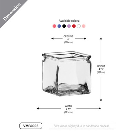 VMB0005 - Cube Vase with Lip, Machine Pressed - 4.8" (Various Colors)